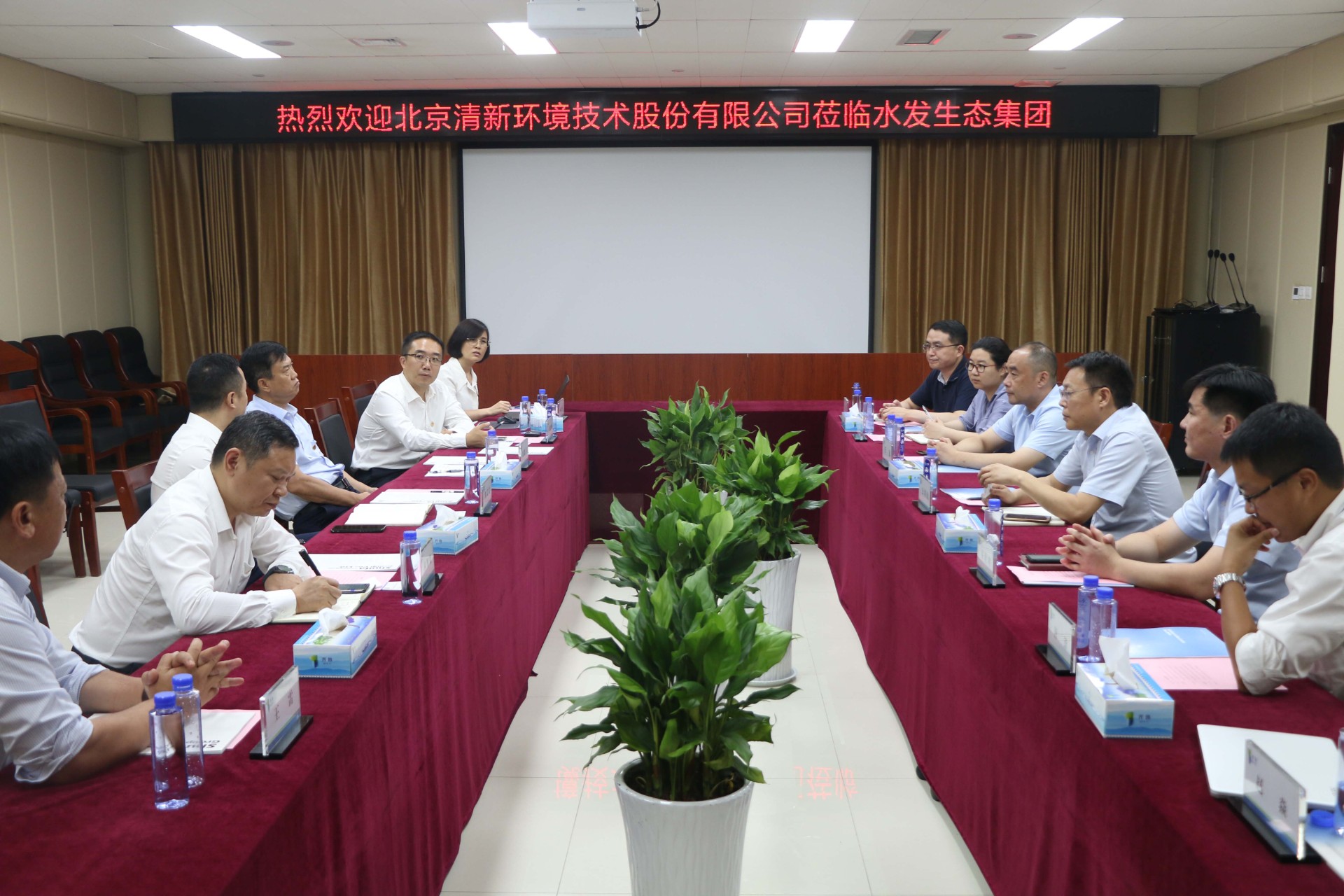 7月14日,北京清新環境技術股份有限公司董事長鄒艾艾一行到水發生態考察并座談,水發生態黨委書記、董事長公培山主持座談。