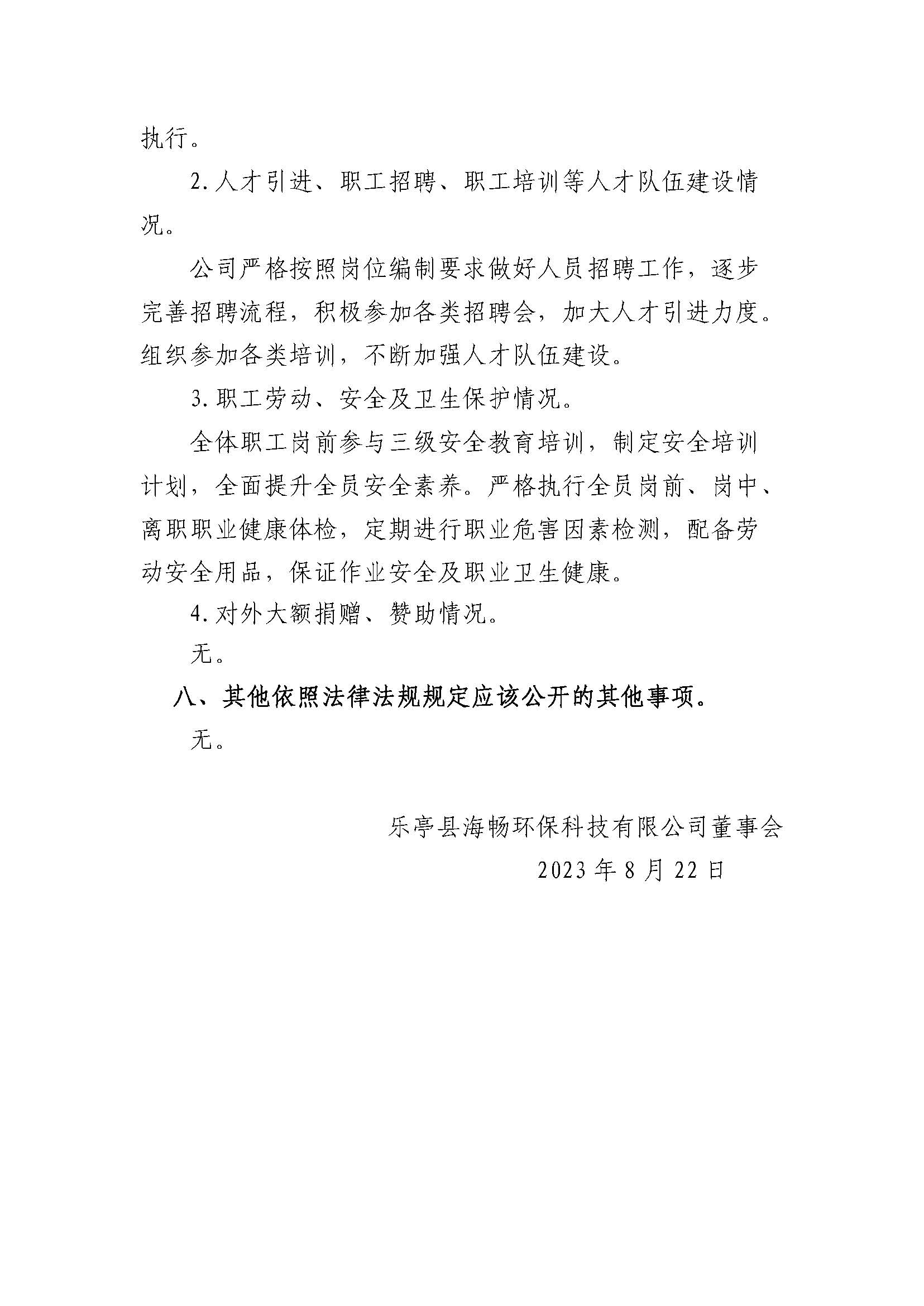 樂亭縣海暢環保科技有限公司2023年度重大信息公告