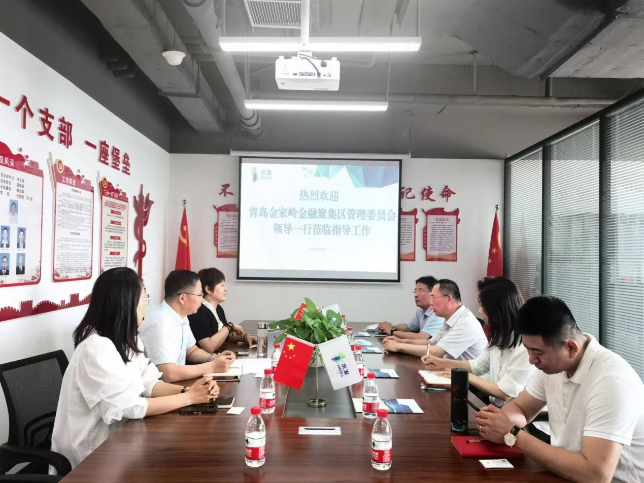 6月8日,青島金家嶺金融聚集區管理委員會黨工委副書記、常務副主任,嶗山區委常委黃應勝一行到訪水發海若環境技術有限公司,常務副總經理武博等相相關人員接待并進行座談交流。