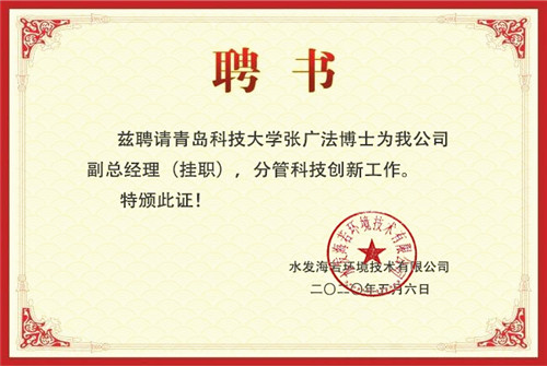 根據(jù)山東省“千名博士進(jìn)企業(yè)”行動計(jì)劃,落實(shí)水發(fā)“四個聯(lián)系”,青島科技大學(xué)特聘副教授張廣法博士入職水發(fā)海若環(huán)境技術(shù)有限公司,掛職副總經(jīng)理,分管科研創(chuàng)新工作。