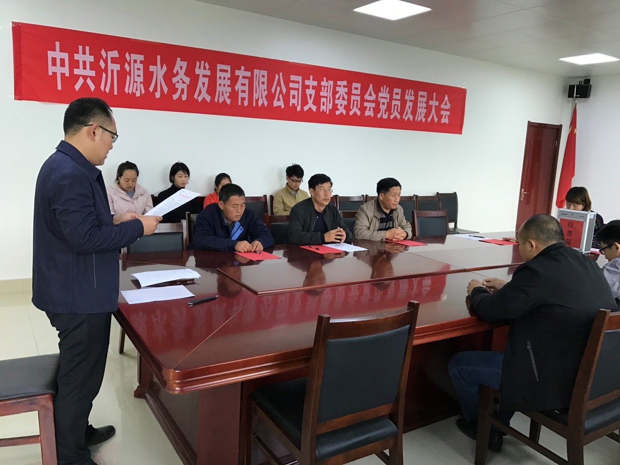 10月16日下午,沂源水務(wù)發(fā)展有限公司黨支部召開了黨員發(fā)展大會。會議由公司黨支部書記孫兆欣主持,沂源縣經(jīng)濟(jì)開發(fā)區(qū)黨工委亓玉河書記、沂源水務(wù)發(fā)展有限公司全體黨員及群眾代表參加了會議。