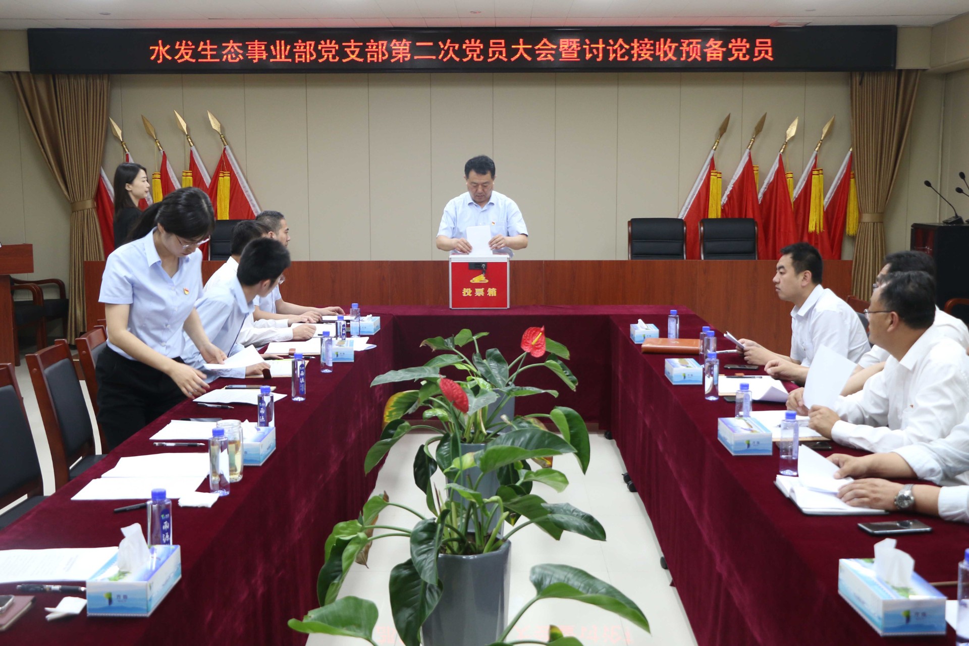 會上宣讀了水發生態黨委關于同意增補事業部支部委員的批復,會議嚴格按照黨組織程序接收預備黨員。經過與會黨員正式投票表決,一致同意接收張法睿為中共預備黨員。
