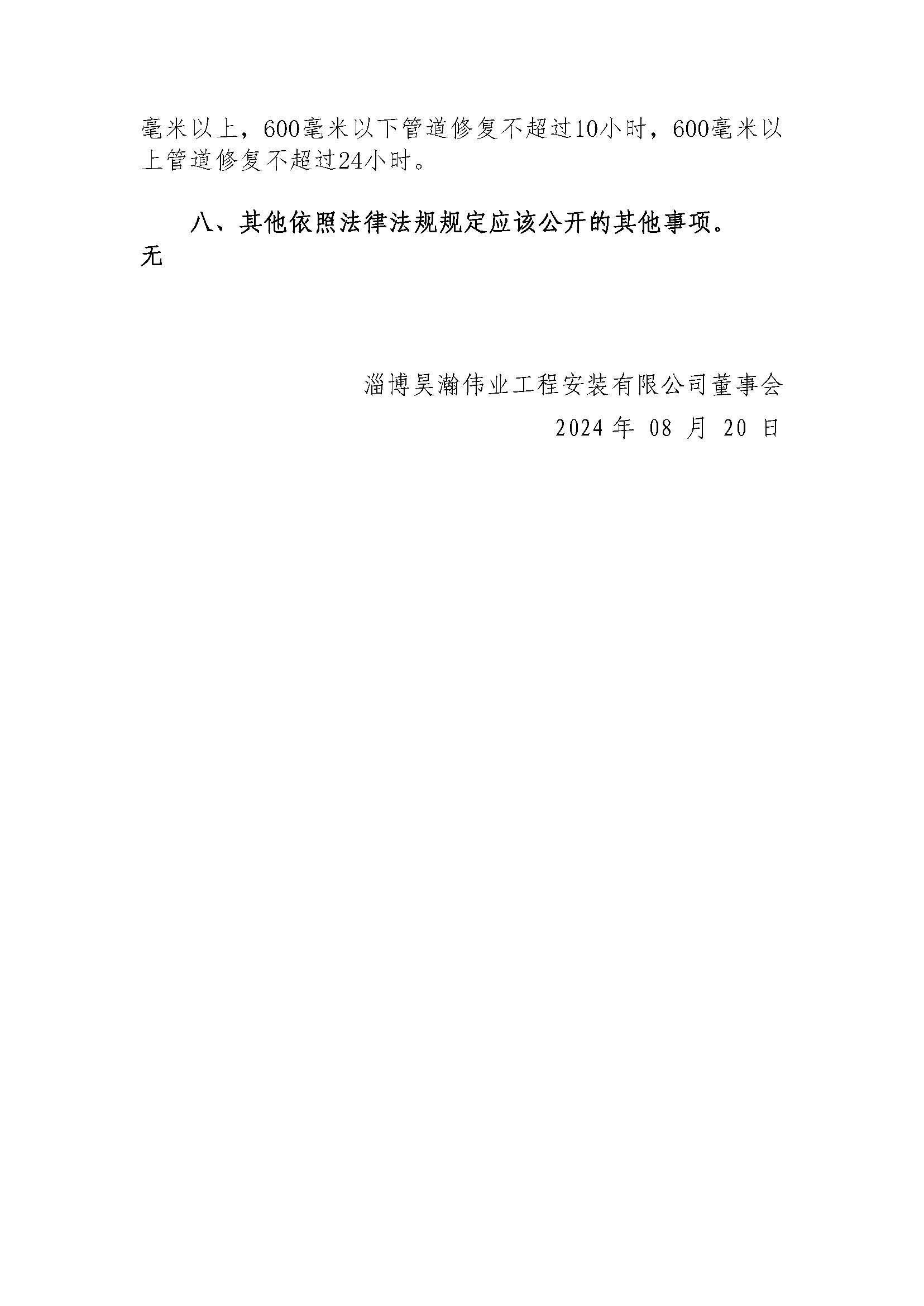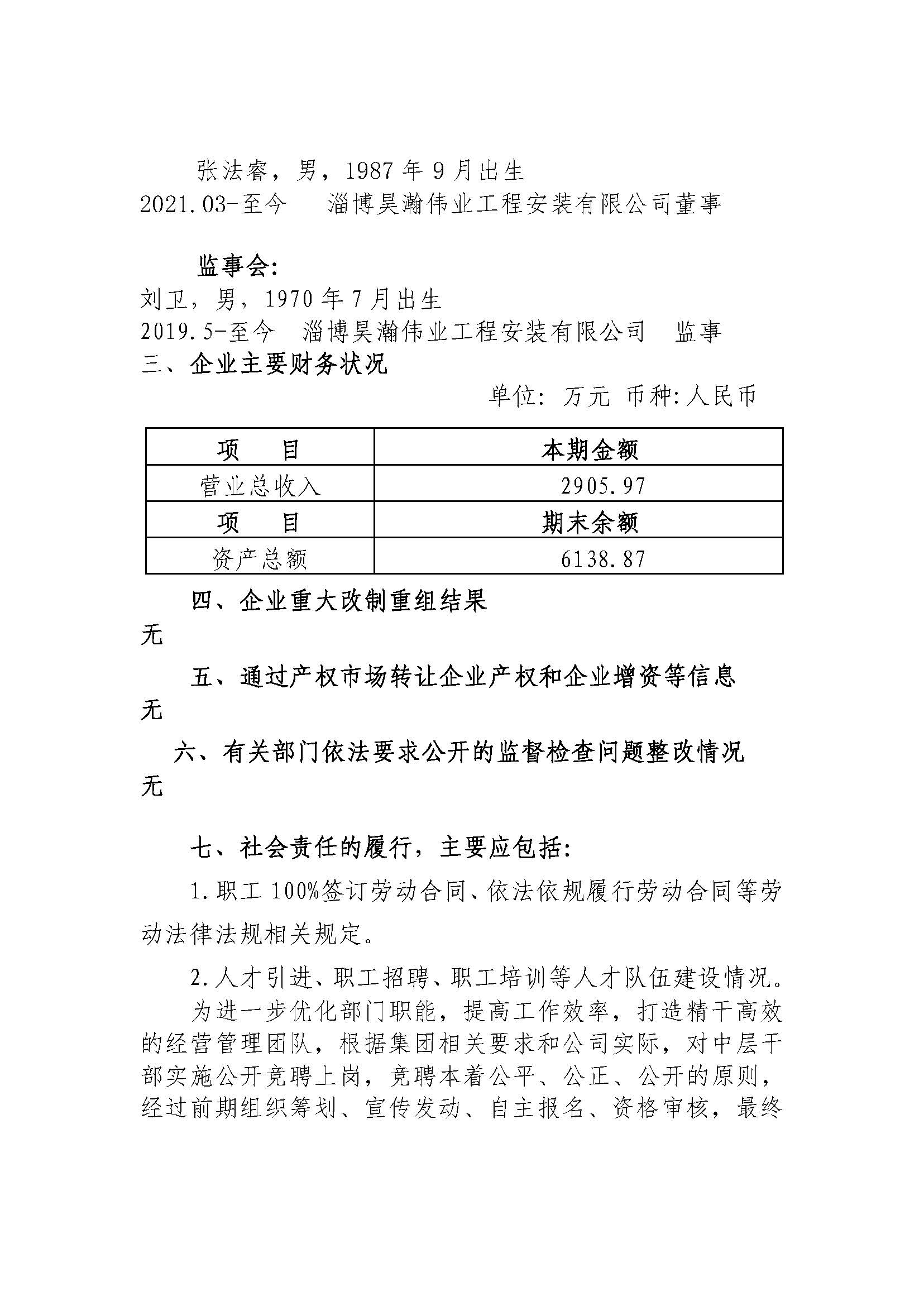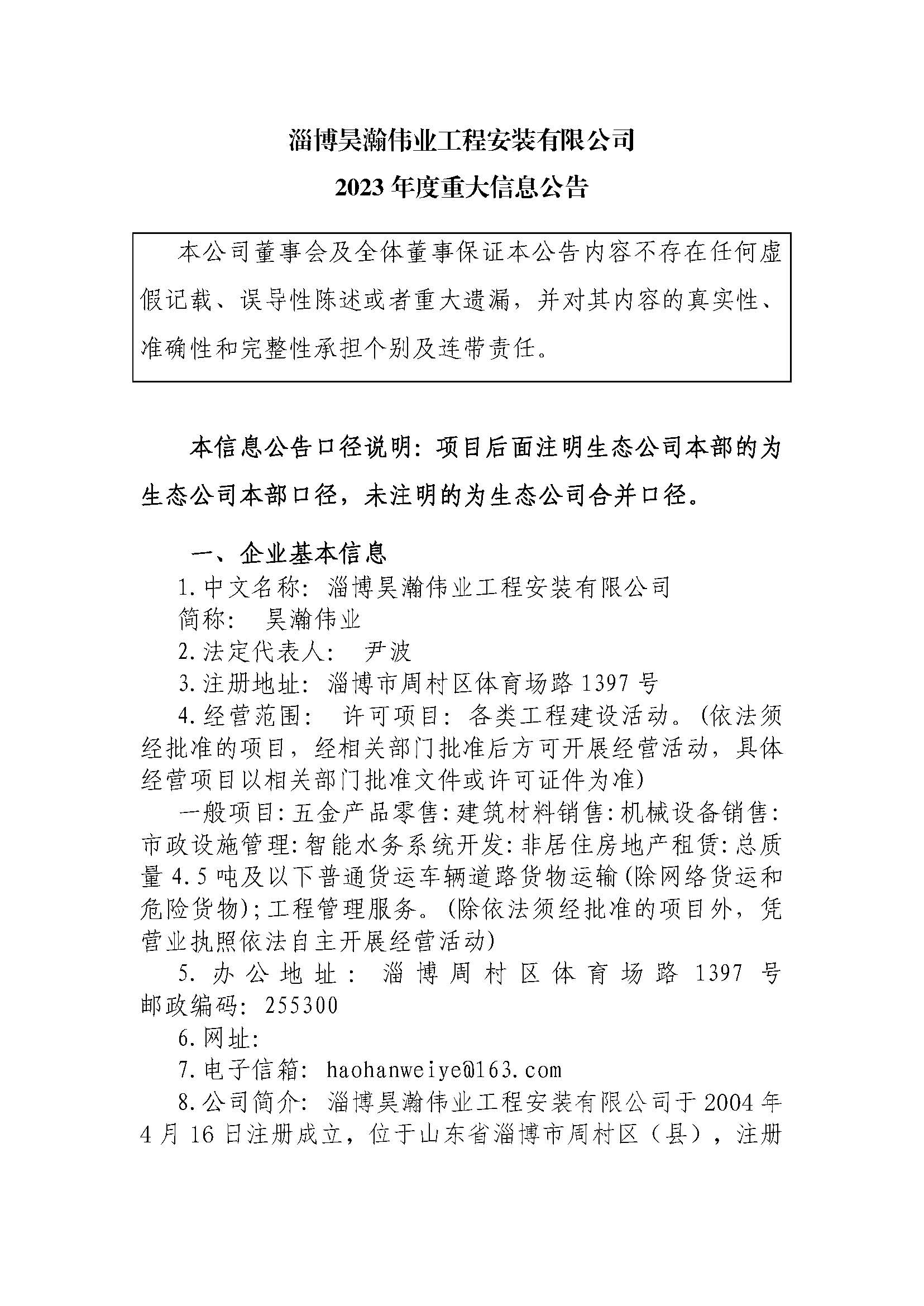 淄博昊瀚偉業工程安裝有限公司2023年度重大信息公告