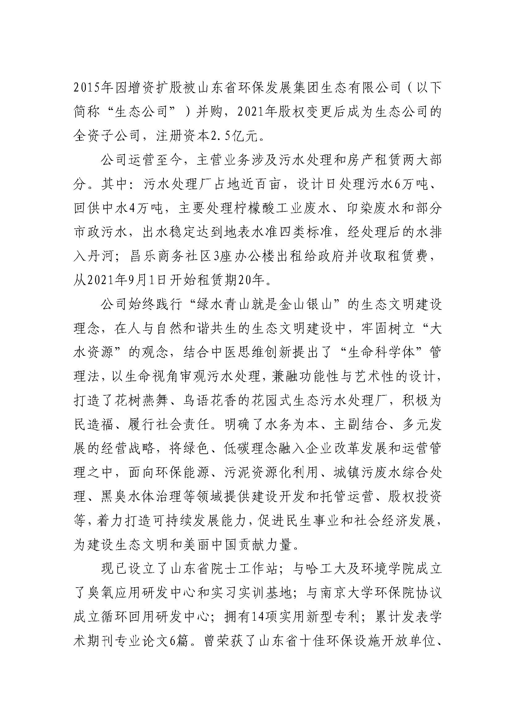 昌樂藍寶石水務發展有限公司2023年度重大信息公告