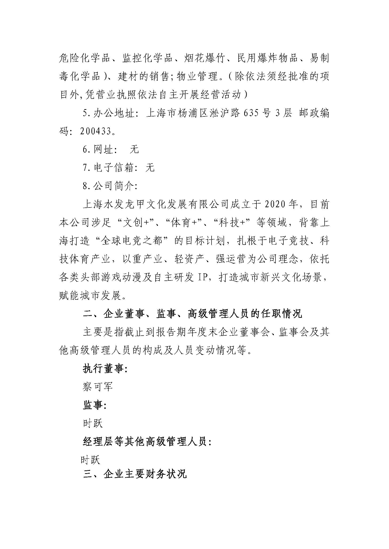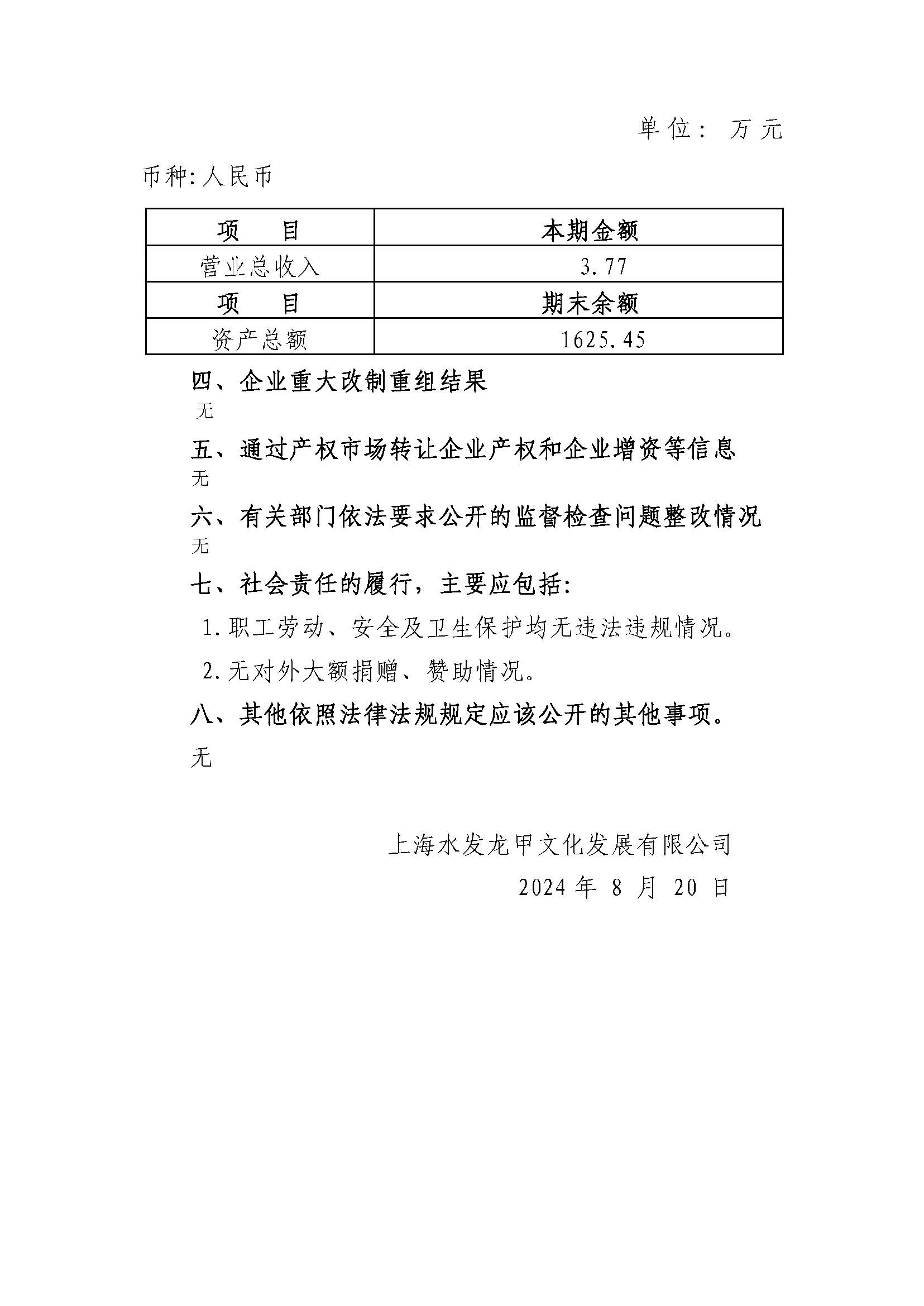 上海水發龍甲文化發展有限公司 2023年度重大信息公告
